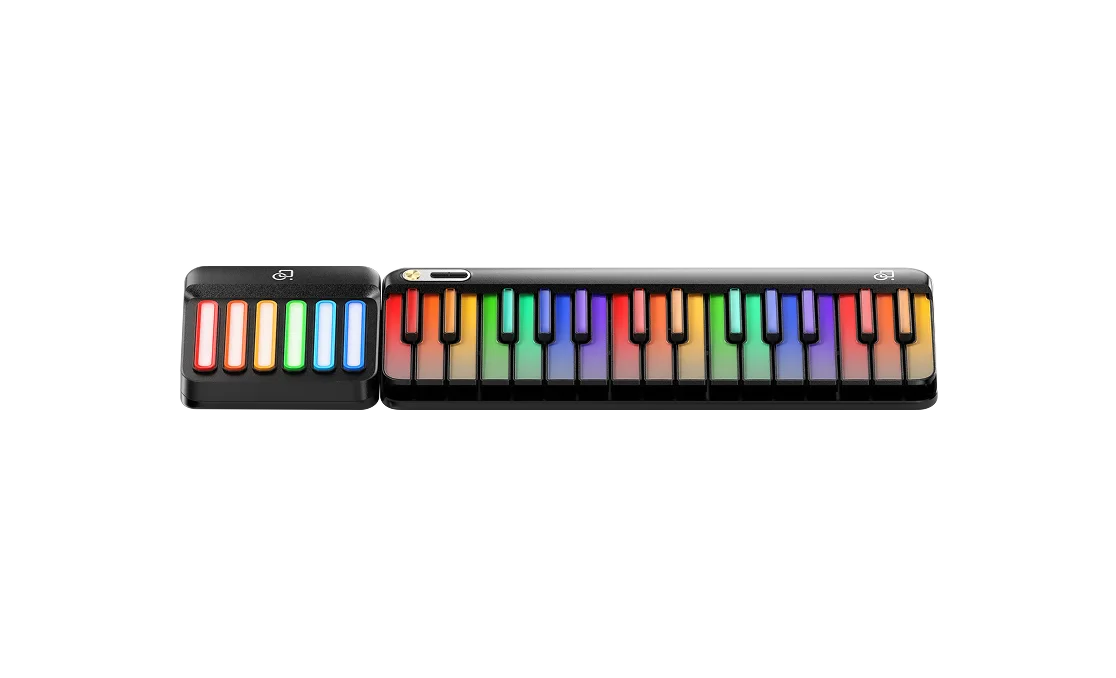Snap, switch, and scale. PopuPiano’s modular structure lets you build your own creative workstation. Stack modules for more keys or controls — flexibility that evolves with your music.