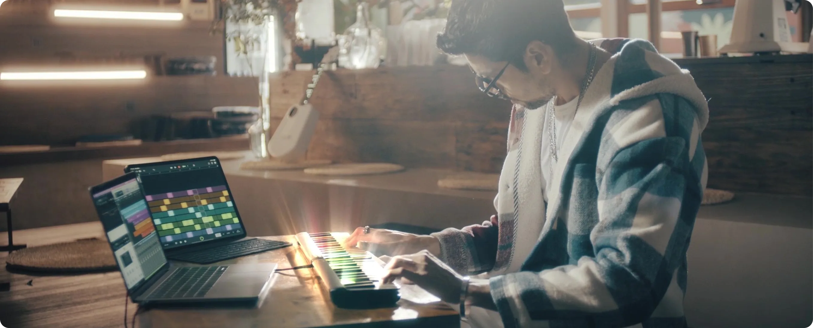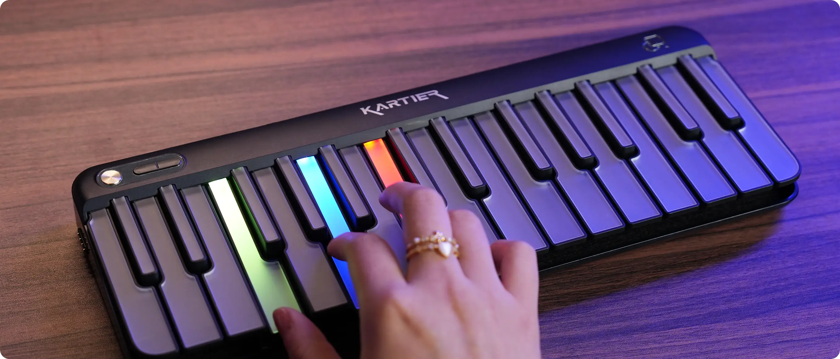 PopuPiano speaks your language — MIDI and Dimi supported. Easily connect with Logic Pro, Ableton Live, Cubase and other DAWs via Bluetooth or USB-C. Compatible with Windows, macOS, iOS, and Android.