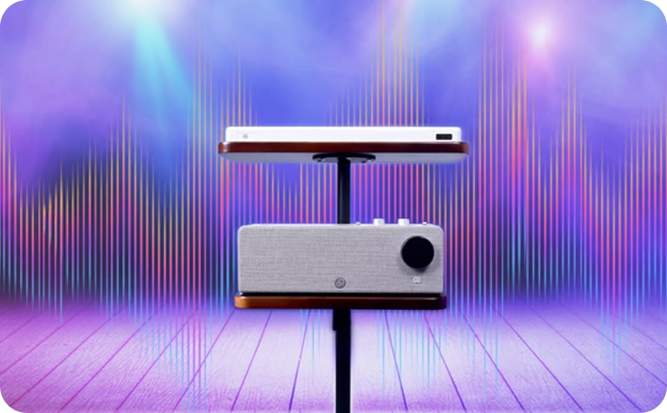 Turn any space into your stage. We’ve designed the ultimate performance stand to match your flow. With an adjustable height range of 86cm-100cm and a solid 10kg weighted base, it provides rock-steady stability for standing play. The dual wooden platforms rotate to your preferred angle and are custom-molded to lock your PartyStudio and PartyKeys securely in place—so you can focus on the music, not the gear.