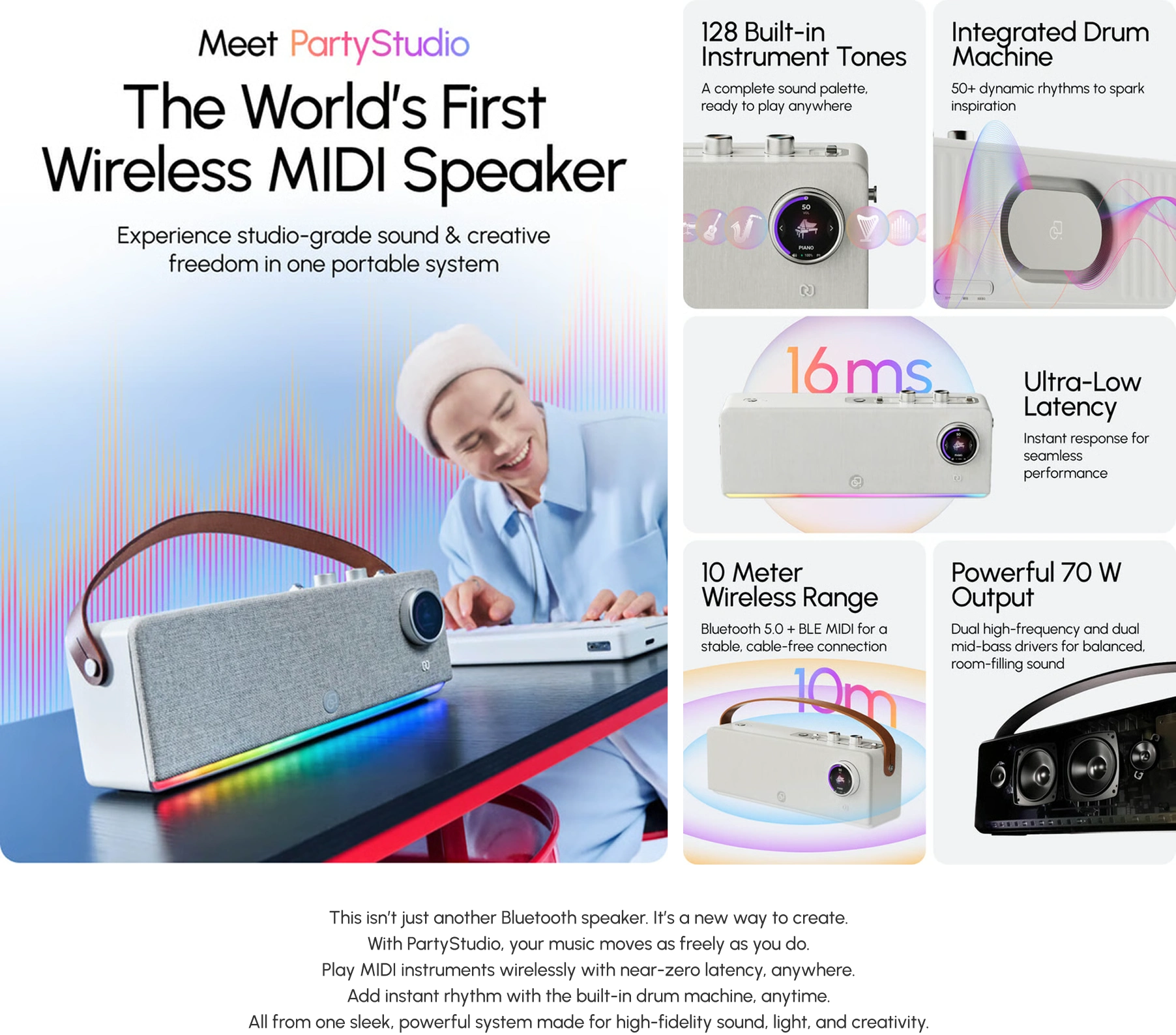 If that still doesn’t spark your creativity, PartyStudio supports over-the-air updates via Wi-Fi, so new tones are always on the way.