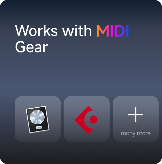 PartyKeys speaks your language — MIDI and Dimi supported. Easily connect with Logic Pro, Ableton Live, Cubase and other DAWs via Bluetooth or USB-C. Compatible with Windows, macOS, iOS, and Android.
