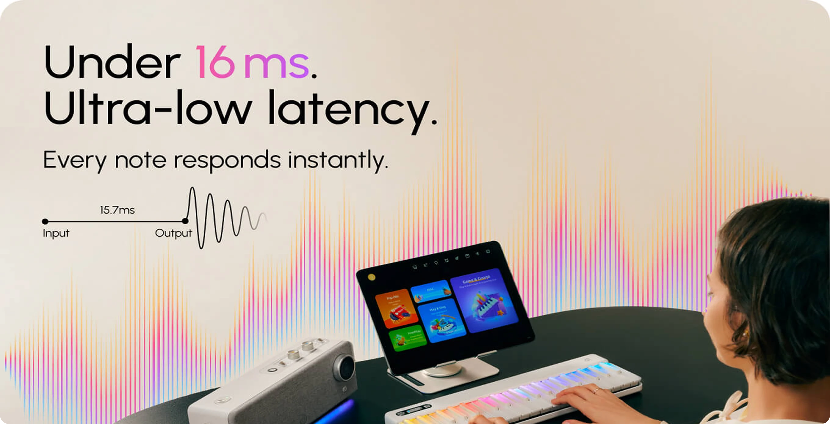 Every note responds instantly — so your timing stays tight and your playing feels natural, whether you’re practicing, jamming, or recording ideas.