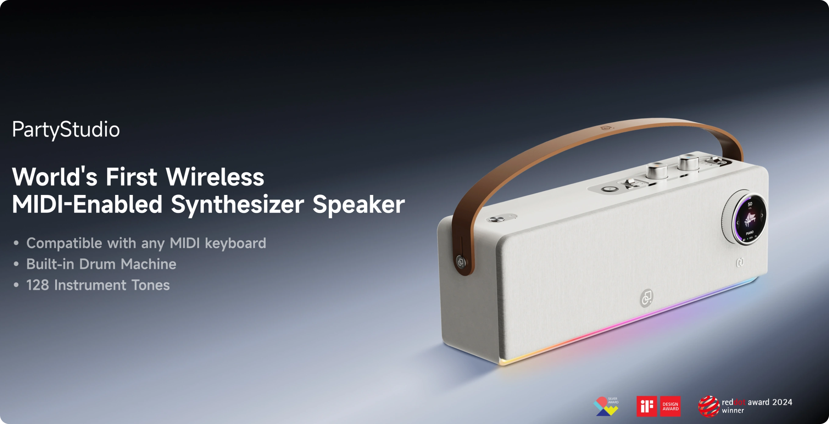 PartyStudio is a production-ready MIDI speaker with ultra-low 6ms latency and tight wireless performance.